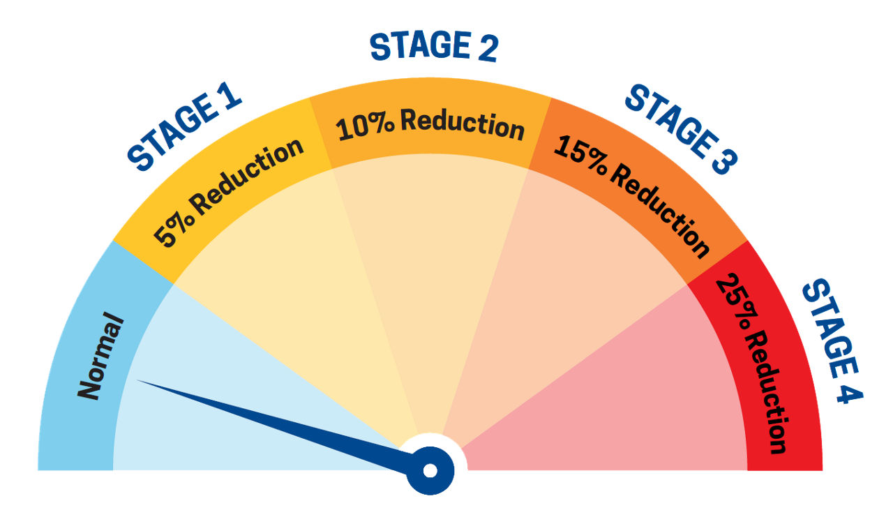 There are four stages of water restrictions, based on how much water our community needs to save.